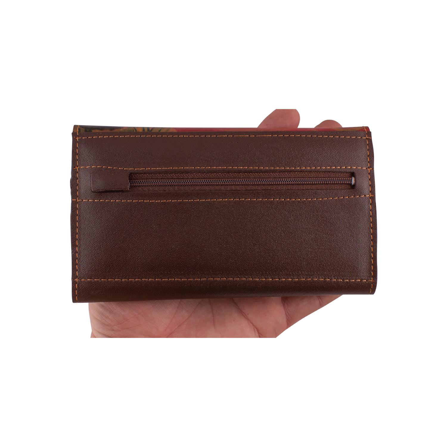 Billetera de Tipo Fichero Para Dama En Cuero Con Solapa Floreada