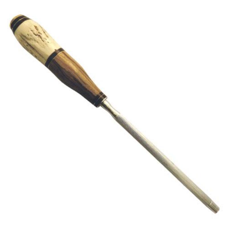 Chaira Regional De Acero Inox Schmieden 14 Cm Encabado Con MaderaCiervo u Otros Materiales Con Porta Chaira De Cuero Vaqueta