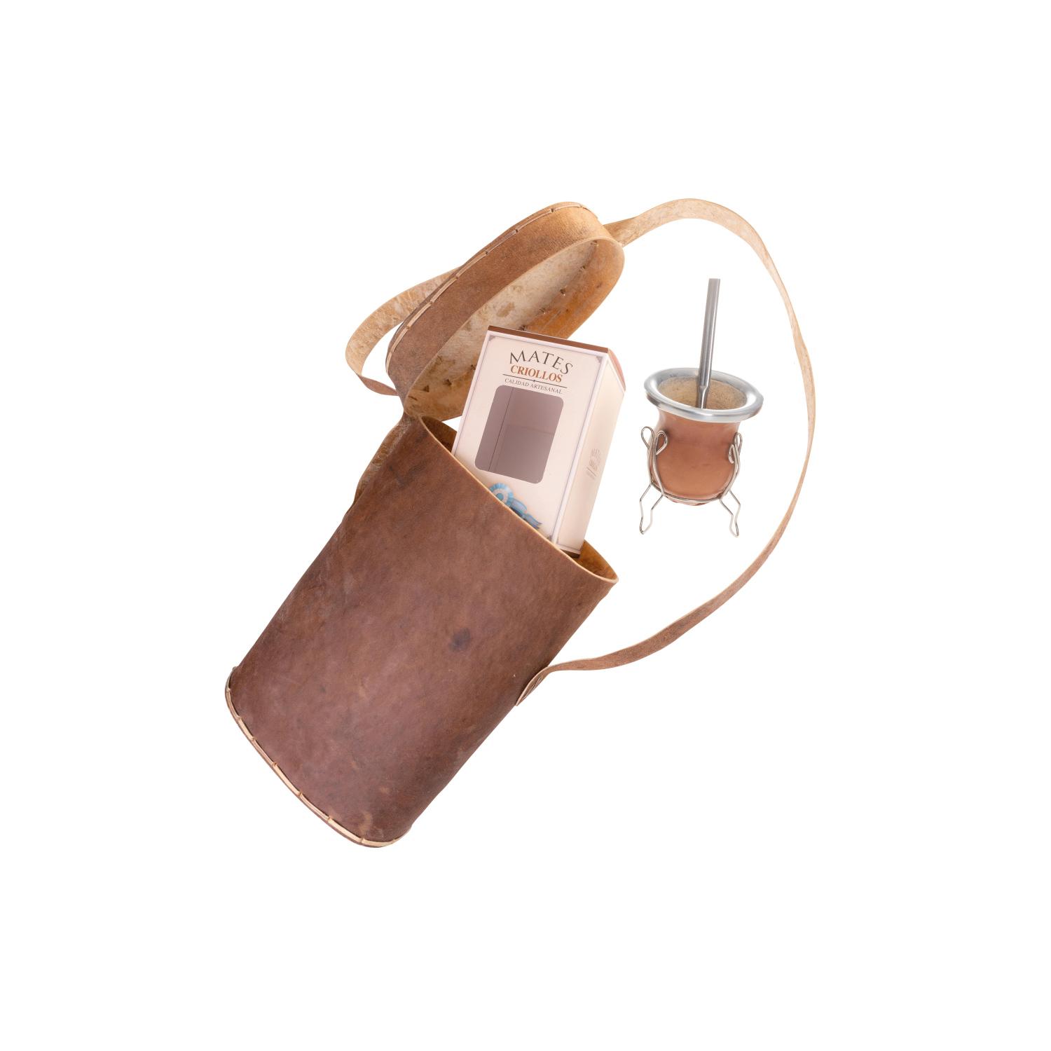 Combo Termera De Cuero1 Mate De Calabaza Forrado Vaqueta Bombilla Acero Inox Plana Grabado CCaja1 Porta Termo Rustico Rigido en Cuero Crudo