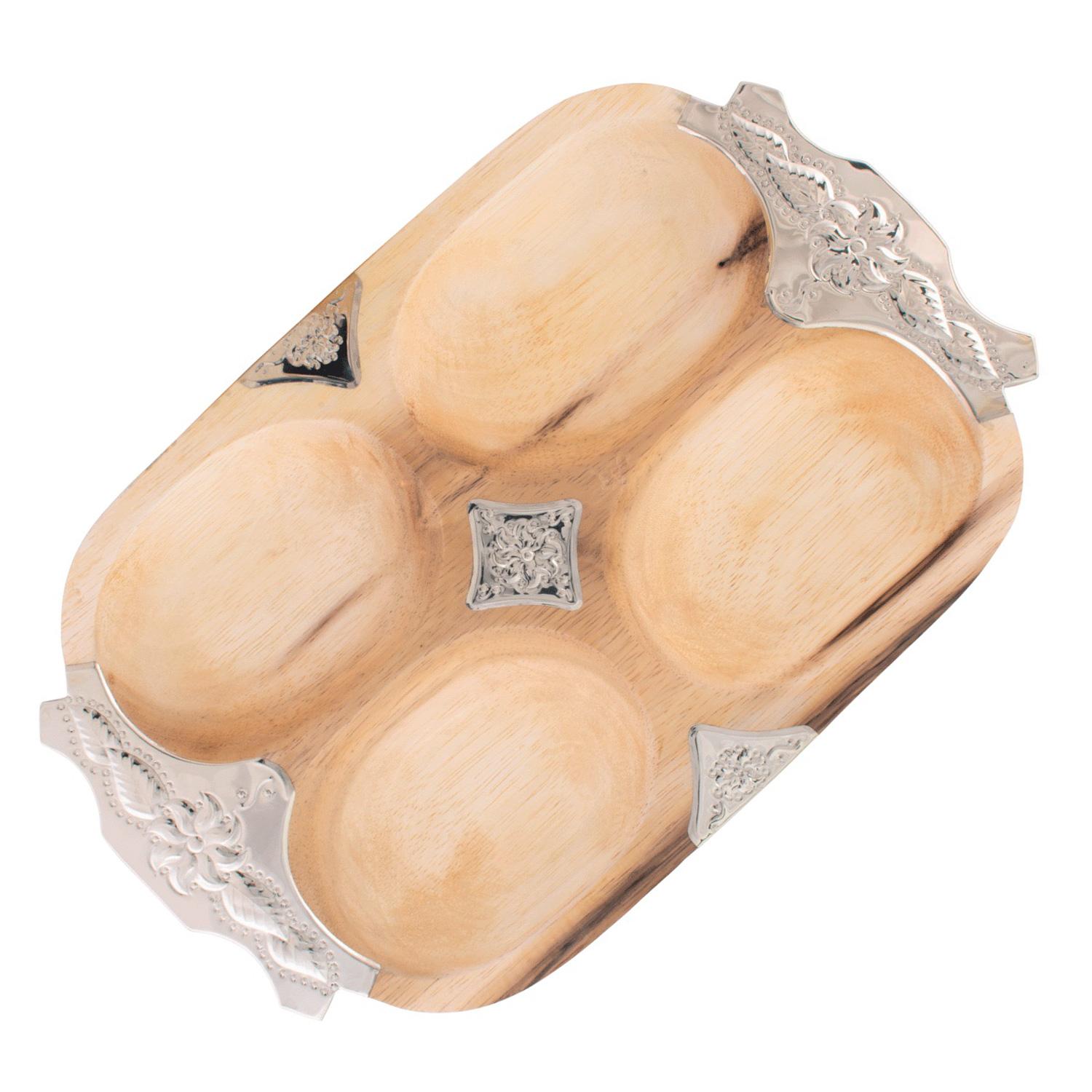 Copetinero De Madera Pacar Con Finas Terminaciones En Alpaca Labrada x 4 Divisiones