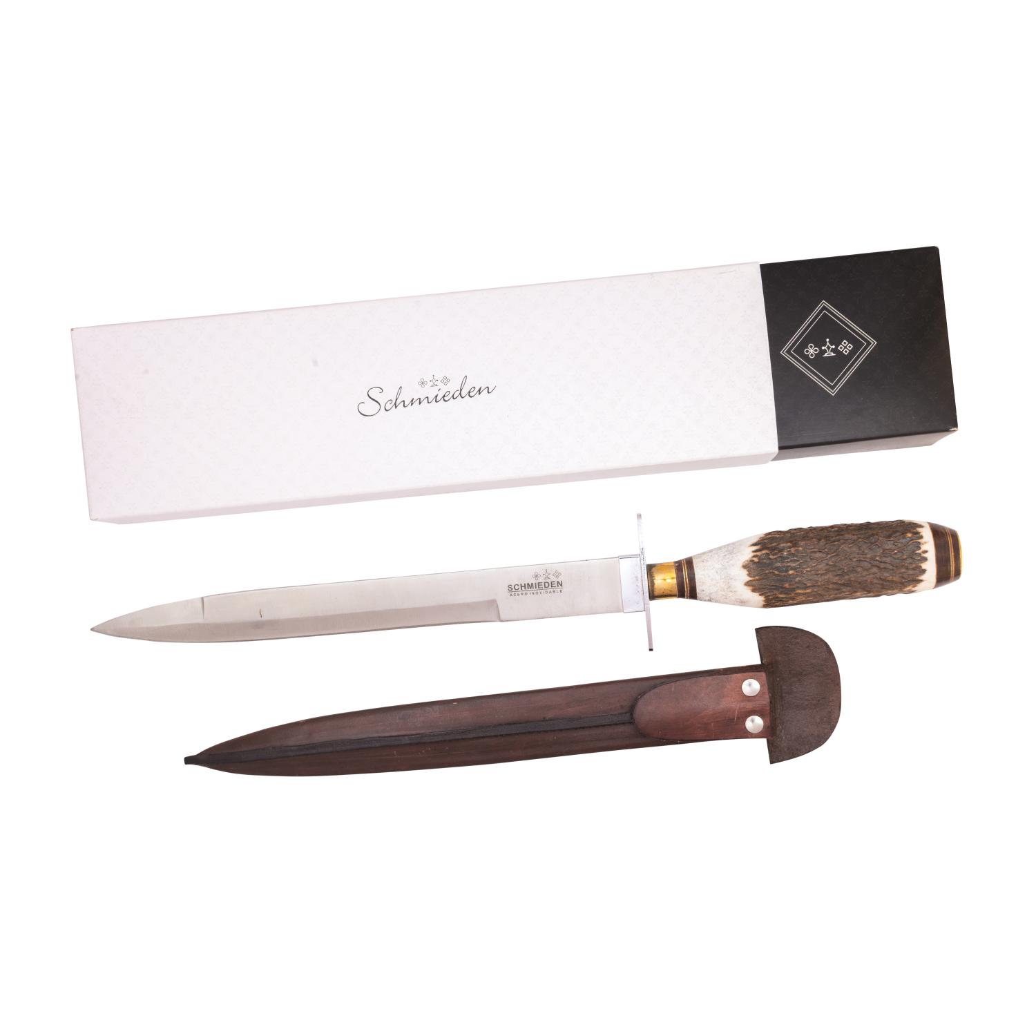 Daga Hoja Acero Inox Schmieden 25 Cm Encabado En Ciervo Completo y Vaina De Cuero Vaqueta