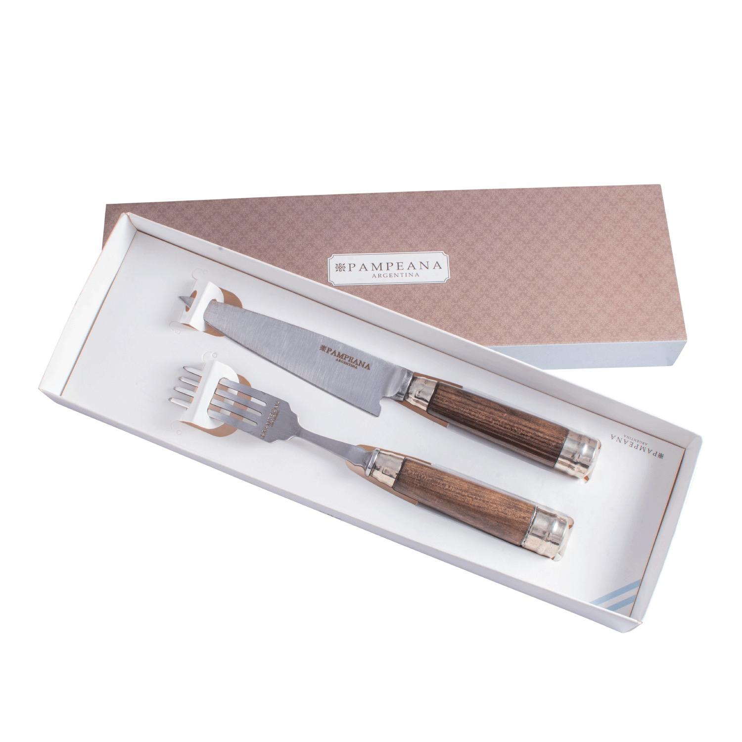 Juego De Cuchillo Y Tenedor Inox Encabado En Madera Y Alpaca Con Packaging