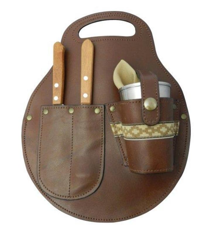 Juego De PicNic Individual En Cuero Vaqueta Con Plato De Madera Vaso De Acero Inox Servilleta y Cubiertos
