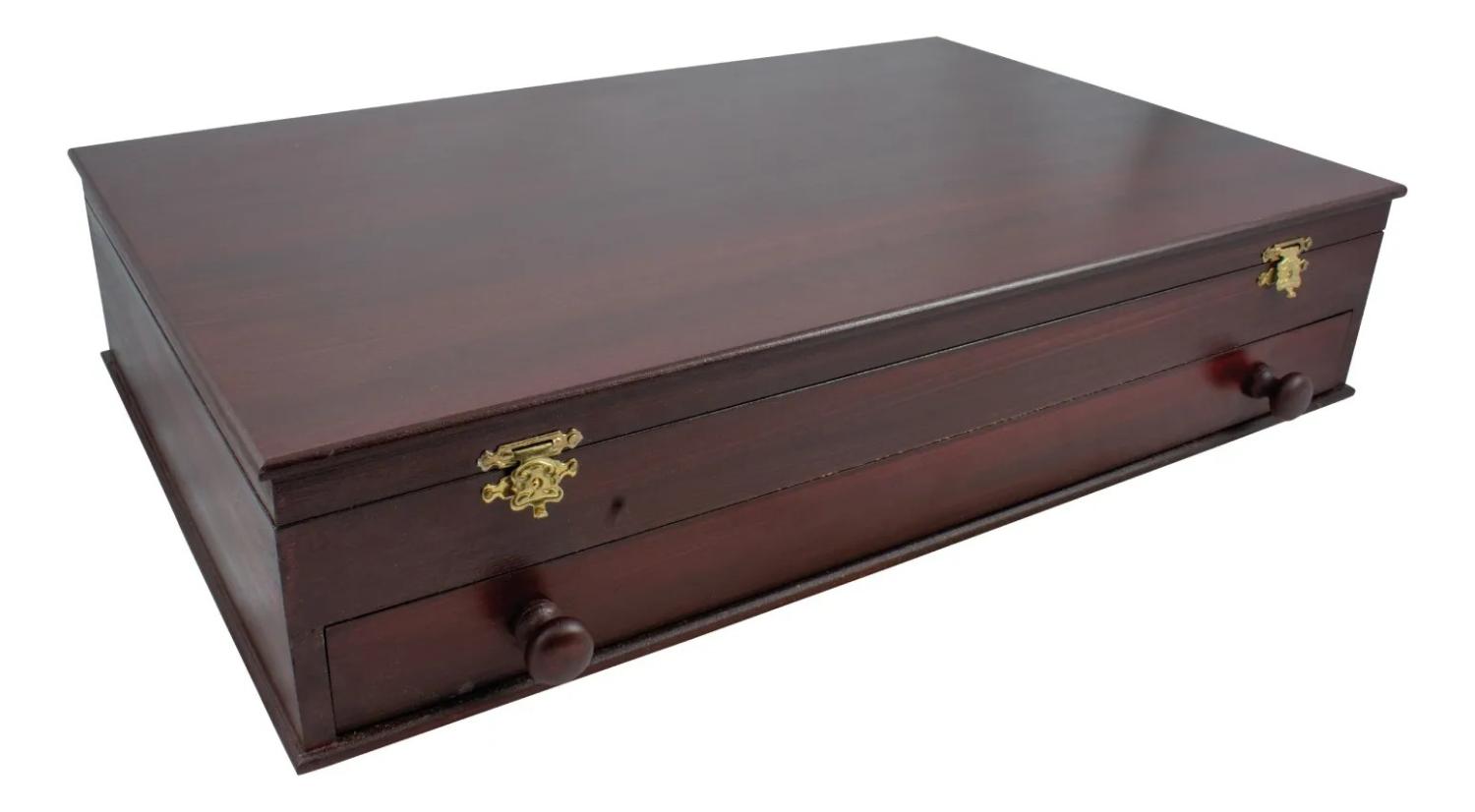 Juego De Tenedores y Cuchillos En Acero Inoxidable 5 Por 24 Unidades Encabados En Hueso Con Alpaca Y Caja De Madera Forrada En Pana