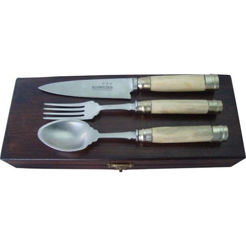 Juego Para Asado CuchilloTenedor y Cuchara Acero Inox Schmieden 5 Encabados En Hueso y Alpaca Con Caja Fina