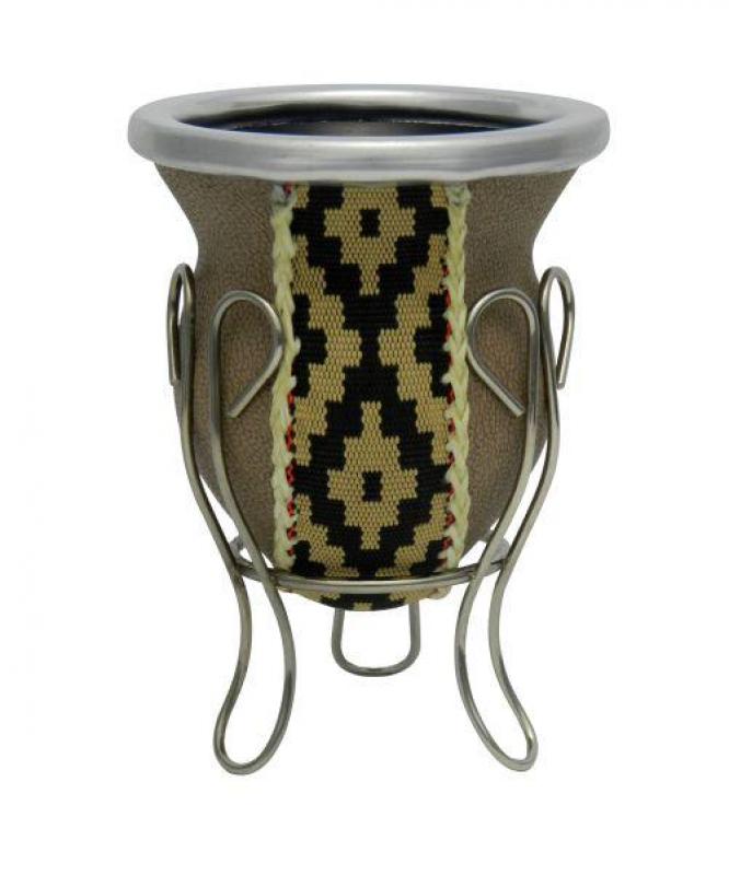 Mate De Vidrio Forrado En Cuero Y Guarda Con Posa De Metal