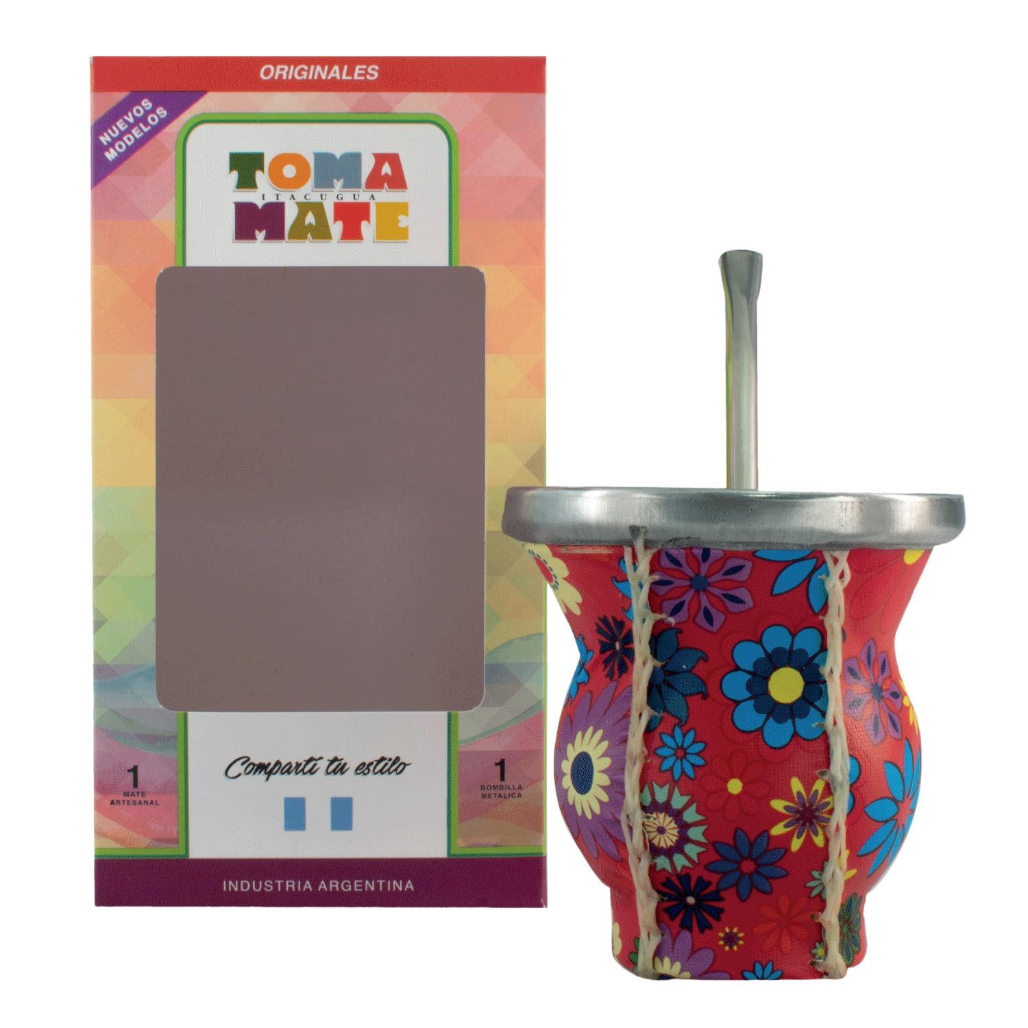 Mate De Vidrio Copita Forrado Motivos Varios Bombilla y Caja