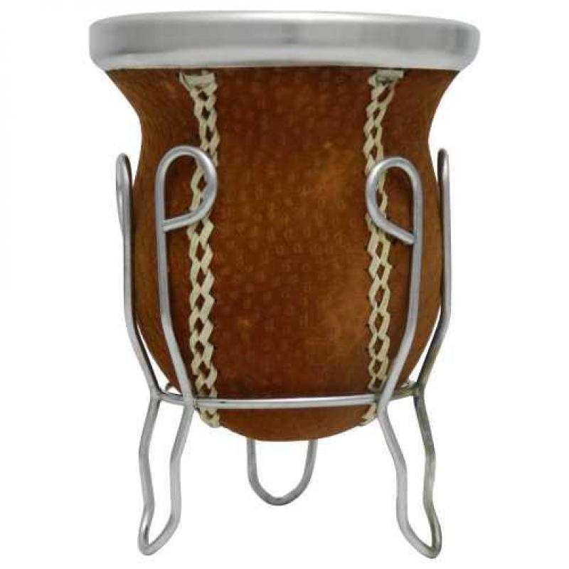 Mate Vuelo De Calabaza Recubierto En Carpincho Tejido En Tiento Con Posa De Metal
