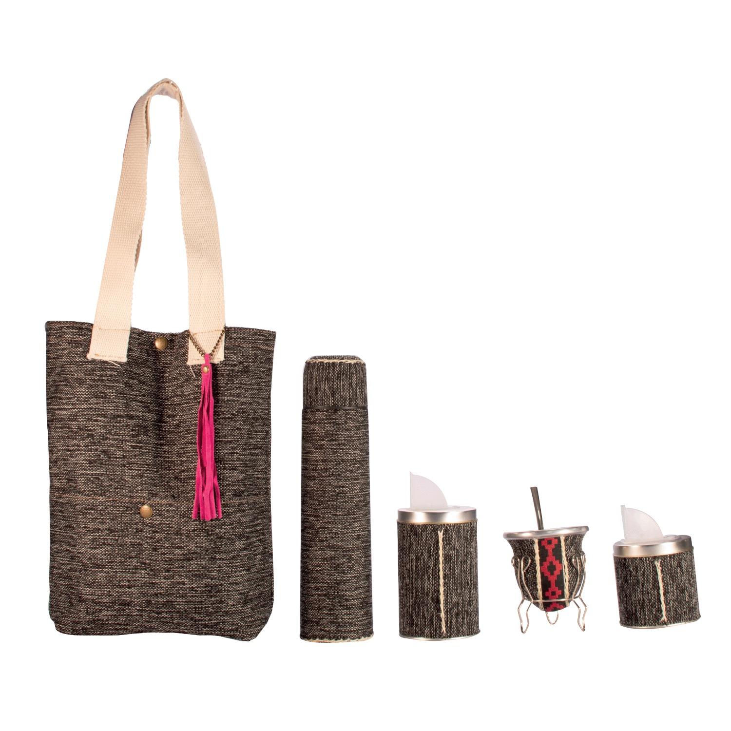 Set Matero Mate De Calabaza Yerbera Azucarera y Termo De Acero Inoxidable Forrado En Arpillera Con Bolso Fino