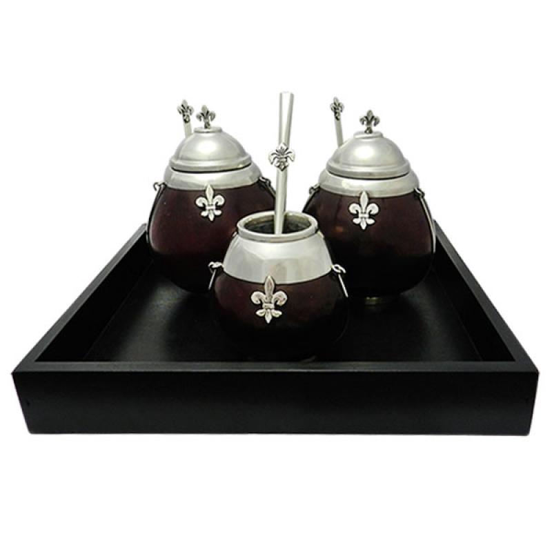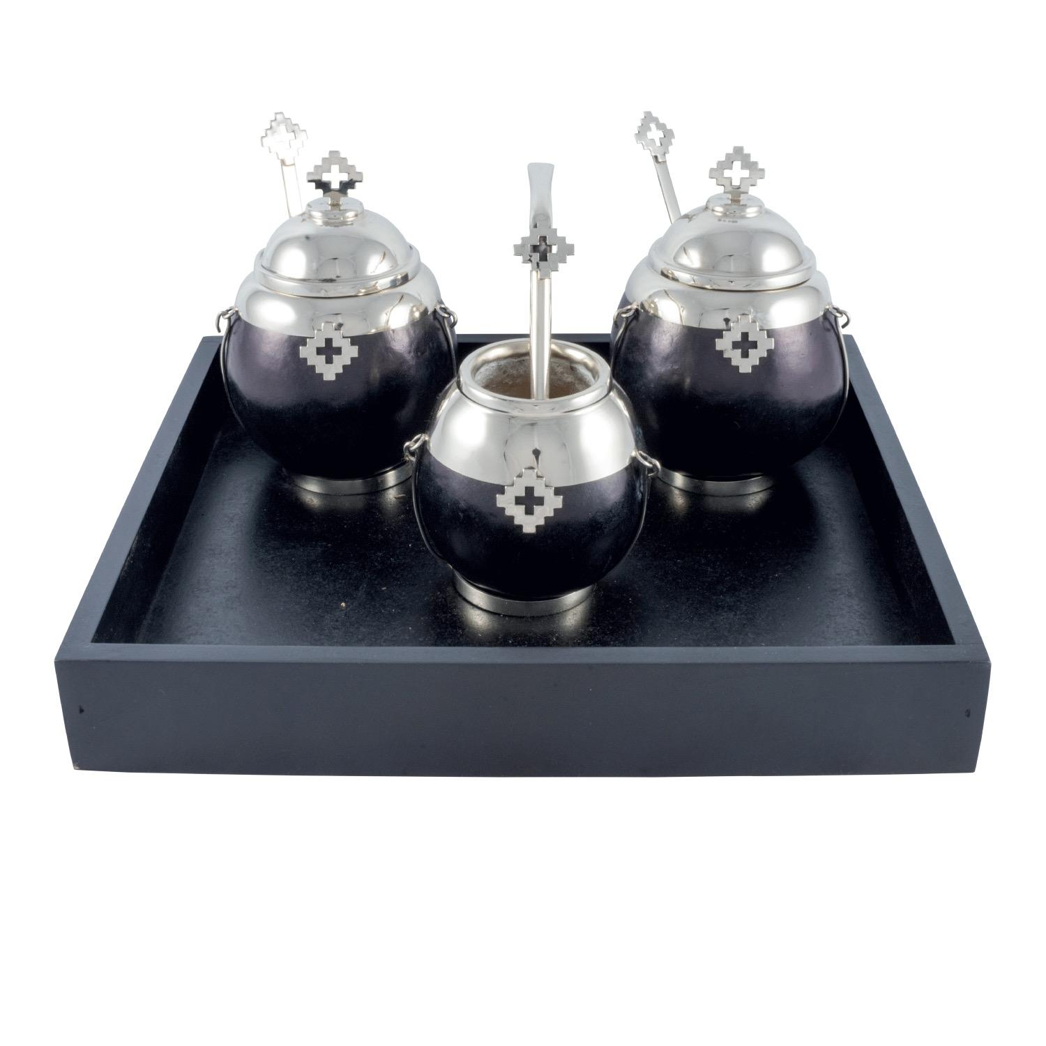 Set Matero Criollo De Calabaza YerberaAzucarera y MateBombilla Con Alambre y Dije De Alpaca En Bandeja